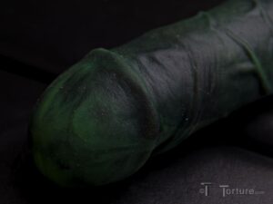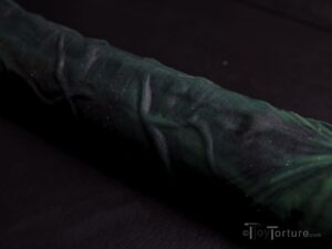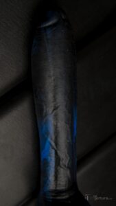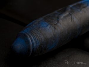 So while the shaft might look a bit intimidating, it is tamer than it first appears. The slight texture adds an interesting stimulation inside the anus without being overwhelming which might cause the sphincter to clench. But in order to get there, you must conquer the glans. An experienced fistee’s any will gladly open up and release the glans after some prestretching. But going deeper and leaving the rectum is an issue. In order to go deeper gently push without turning. Otherwise the texture might cause the muscle to clench. The moment the glans pops through the ring muscle is usually a very impressive – almost overwhelming – sensation which will cause some clenching. But since the glans drop is almost vertical, there is no gradual opening up when you pull the dildo out. It will always feel (a bit) violent. So in order to enjoy it, your second sphincter should already be accustomed to rougher play. Otherwise pulling this dildo out might be a session stopper.
