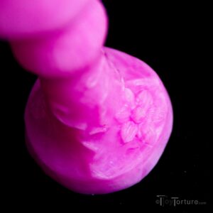 Every orifice that we can stick toys into our body is at least partly lined with a mucosa that can absorb substances quite easily. Because of this, using only body safe toys is important. So almost a decade I have only reviewed stainless steel and primarily platinum silicone toys which is the sole material Fruity Bee Toys uses. Unlike PVC or rubber which can emit potentially dangerous plasticizers, platinum cured silicone is 100% body safe. The supersmooth surface makes not only taking the toy a bit easier but also makes it more difficult for bacteria to linger. Cleaning is easy by throwing it into hot water with dish soap, rinse and spray sanitizer on it after drying. Like all toys, platinum silicone toys should only be with alike materials since plasticizers can destroy other materials when touching or even being exposed to the vapors. The same accounts for silicone oil which will solvate silicone. Because of this, silicone toys must not be used with silicone lube but only water or oil based ones.