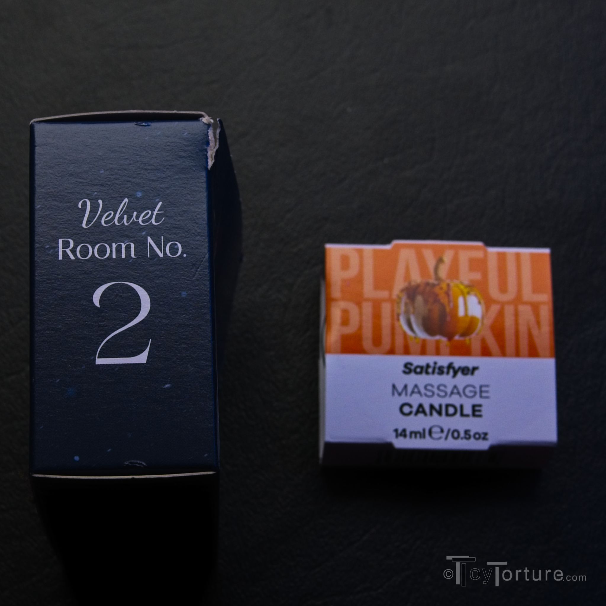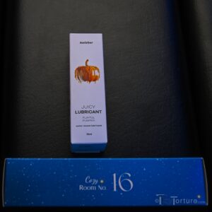 A pumpkin spice massage candle… This pumpkin spice madness has to stop (and sadly, it does not stop here!). Yes, a massage candle is an intimate and safe entry intro wax play. I am all for sensual scenes as foreplay, when you are stressed or don’t have the space for an intense scene. Wax is perfect for this, except the clean up. But this fake pumpkin spice scent? Why not vanilla as an equally seasonal and more neutral scent. Box #2 is not a winner for me.