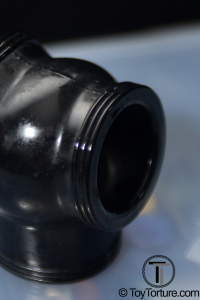 The basic form of this toy is like the letter T. The main body is trapezoid thus following the anatomy of an erected dick. The tubes coming out of both horizontal sides of the main body are 9mm and 13mm long. The perpendicular tube provides 22mm of stretch and has a diameter of 35mm. All opening holes are reinforced with three thin rings which provide a bit snuggier fit.